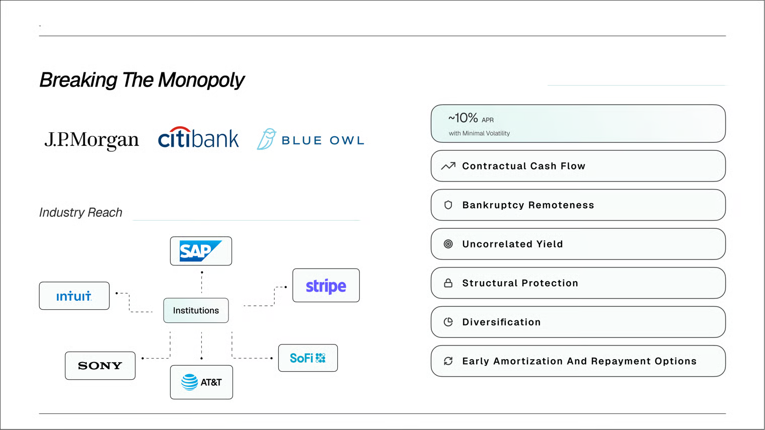 DeFi has built the most advanced financial infrastructure in the world, but has yet to establish large lending relationships with the institutions that dominate traditional finance. Multi-billion dollar companies like Stripe, Uber, Ramp, and Robinhood are still using TradFi to manage working capital despite lengthy onboarding processes, T+3 settlements, and manual operations. Despite older infrastructure, banks, asset managers, and credit funds consistently earn stable risk-adjusted yield and win broader banking relationships with these businesses.